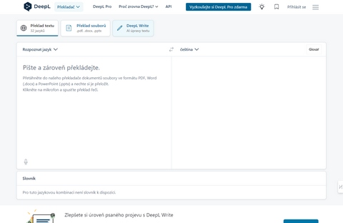 - DeepL umožňuje překládat PDF, Word (.docx) a PowerPoint (.pptx) soubory.