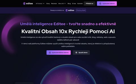 Editee.cz je platforma, která umožňuje využít umělou inteligenci pro vytváření textů, grafik, dokumentů a dalších obsahů jednoduše a rychle. Zde je několik klíčových funkcí, které Editee nabízí: