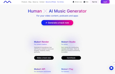 Mubert je platforma, která využívá umělou inteligenci k vytváření bezlicenční hudby pro streamování, videa, podcasty, komerční použití a online obsah. S Mubertem můžete generovat, přizpůsobovat, přispívat nebo poslouchat hudbu vytvořenou umělou inteligencí.